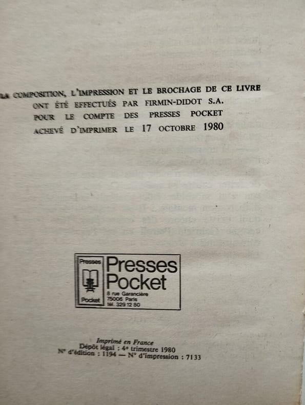 Pocket paris / Pocket n° 1459 1980 192 pages 11 x 18 cm. 1980. Broché. 192 pages.