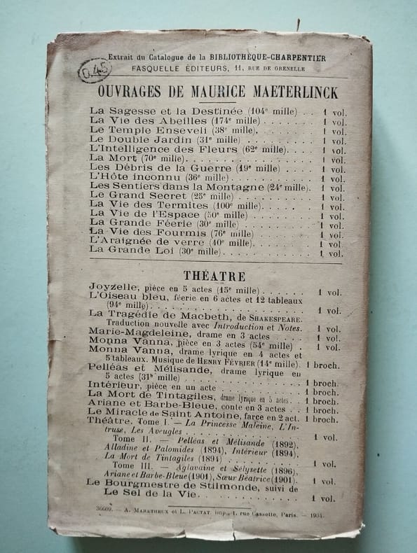 La vie des termites in 8 broché,couverture rempliée,faux-titre,titre,197 pages,1 feuillet de table édition numérotée sur grand vergé Aux éditions du livre Monte-Carlo Très bon état La vie des fourmis in 8 broché,couverture rempliée,faux-titre,titre,237 pages,1 feuillet de table,édition numérotée sur grand vergé.Aux éditions du livre Monte-Carlo Très bon état La vie des abeilles in 8 broché, couverture rempliée,faux-titre,titre,296 pages,1 feuillet de table,édition numérotée sur grand vergé.Aux éditions du livre Monte-Carlo vers 1945 Très bon état Ces 3 volumes sous chemise éditeur cartonnée avec titres et emboitage bordé de toile rouge.Très bon état.