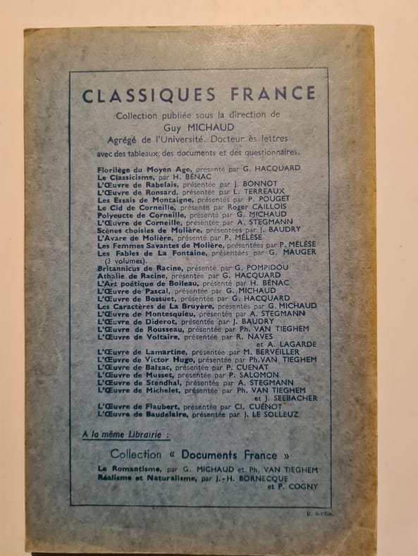 Classiques France, sous la dir. de Guy Michaud. Classification Dewey : 840.04-XVII ème siècle