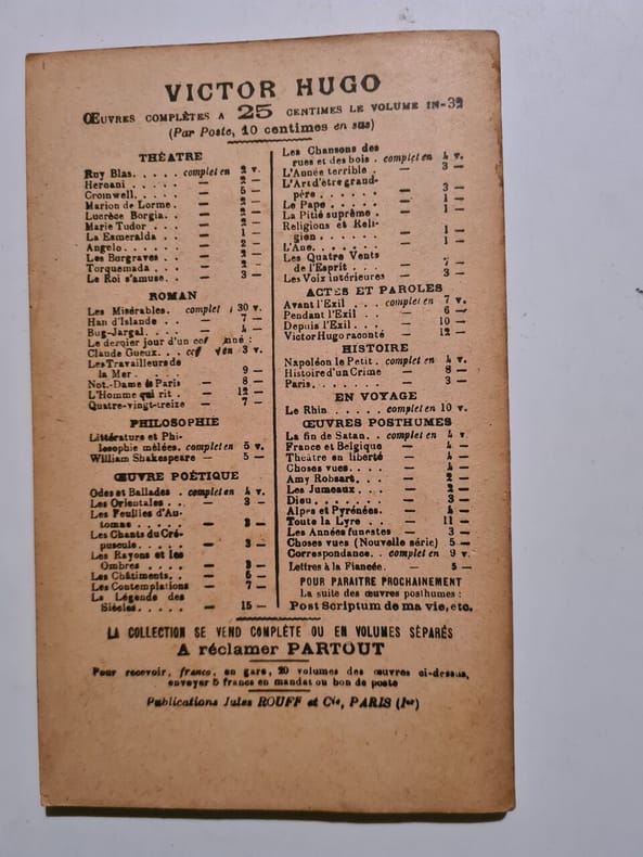 1881 Paris Hetzel & Cie / Maison Quantin ca 1881 1 in-12 Reliure Demi-Chagrin rouge à nerfs, fleurons 187 [pp] "Victor Hugo a vingt-six ans quand il écrit, en deux mois et demi, "Le Dernier Jour d'un Condamné", roman qui constitue sans doute le réquisitoire le plus véhément jamais prononcé contre la peine de mort.Nous ne saurons pas qui est le Condamné, nous ne saurons rien du crime qu'il a commis. Car le propos de l'auteur n'est pas d'entrer dans un débat mais d'exhiber l'horreur et l'absurdité de la situation dans laquelle se trouve n'importe quel homme à qui l'on va trancher le cou dans quelques heures.Ce roman - aux accents souvent étrangement modernes - a une telle puissance de suggestion que le lecteur finit par s'identifier au narrateur dont il partage tour à tour l'angoisse et les vaines espérances. Jusqu'aux dernières lignes du livre, le génie de Victor Hugo nous fait participer à une attente effarée : celle du bruit grinçant que fera le couperet se précipitant dans les rails de la guillotine.Quiconque aura lu ce livre n'oubliera plus jamais cette saisissante leçon d'écriture et d'humanité.""" ... Un homme nommé Claude Gueux, pauvre ouvrier, vivait à Paris en 1831. Il avait avec lui une fille qui était sa maîtresse et un enfant de cette fille... Il était capable, fort habile, intelligent, fort mal traité par l' éducation, fort bien traité par la nature, ne sachant pas lire mais sachant penser. Un hiver, l' ouvrage manqua. L' homme, la fille et l' enfant eurent froid et faim. L' homme vola. Il en résulta trois jours de pain et de feu pour la femme et pour l' enfant et cinq ans de prison pour l' homme. Il fut envoyé faire son temps à la Maison Centrale de Clairvaux.On va voir ce que la Société en fait."Relation allégorique d' un drame individuel, cet ardent plaidoyer contre la peine de mort et contre la prison met à nu le mécanisme de la brutalité sociale qui ne sait répondre à la détresse que par la répression. Avec Claude Gueux, Victor Hugo n' est plus simplement romancier ou poète, il conquiert une place éminente auprès des plus grands orateurs de la Liberté.Cinq ans de prison pour ne pas voir sa femme grelotter de froid, son enfant mourir de faim Souffrir les humiliations imposées par un garde-chiourme sans scrupules. Puis, se révolter contre les vexations et le mépris... Est-ce un crime de vouloir défendre sa dignité, de vouloir rester homme, malgré tout?" - Cité de Babelio