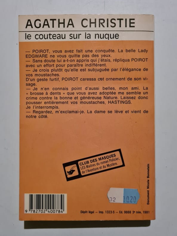 1993 1993. Agatha Christie - Le Couteau sur la nuque / Club des Masques 1993