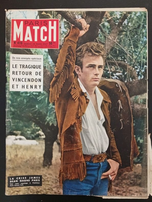 JAMES DEAN EN COUVERTURE/"LA CRISE JAMES DEAN GAGNE PARIS"-PUB COULEURS DISQUE BLEU/VILLEMOT-PUB PSCHITT/FRANCOISE ARNOUL/2P-LE TRAGIQUE RETOUR DES ALPINISTES DE NOEL/MONT-BLANC/VINCENDON/HENRY/10P-WASHINGTON NE REPOND PLUS-MORT DU PICASSO DE LA SCULPTURE/BRANCUSI-L'ARMADA/CHURCHILL/LES GEANTS DE L'HISTOIRE-PUB VESPA/GILBERT BECAUD-HONNEUR AU CINEASTE MAUDIT/ERIC VON STROHEIM-TUNIS:LES CHAISES VIDES DE LA FRANCE-TUNIS/NIXON N'ARRIVE PAS A AVALER LE LOUKOUM ARABE-MEDECIN DES DAMES SEULES ADAMS DEVANT SES JUGES-CES CINQ IMAGES DE SOPHIA LOREN SONT PEUT-ETRE LE DEBUT D'UN ROMAN D'AMOUR/MASTROIANNI-ARIANE SIMCA-ENTERREMENT DE TOTO MIRANDE-BAUDOUIN IER LE ROI SEUL-LEGER MANQUE COIN SUPD P4 DE COUV