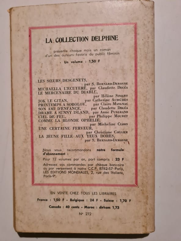 LES EDITIONS MONDIALES / COLLECTION DELPHINE N°272. 1969. In-12. Broché. Etat d'usage, Couv. convenable, Dos satisfaisant, Quelques rousseurs. Environ 140 pages.. . . . Classification Dewey : 840.091-XX ème siècle