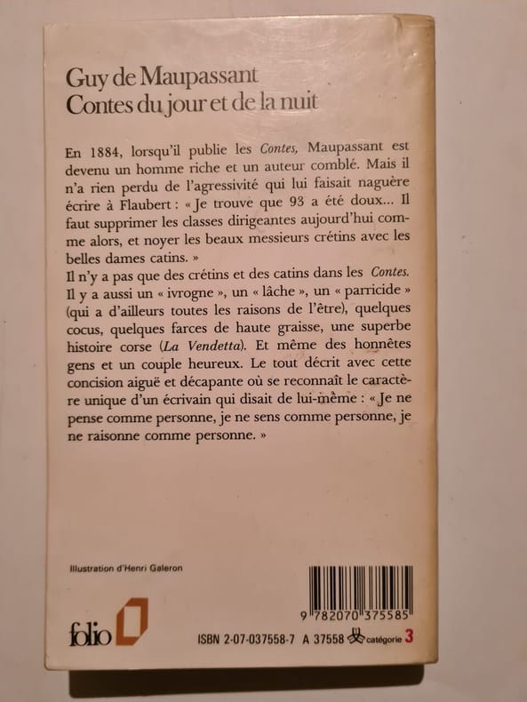 Texte établi et présenté par Gilbert Sigaux - ce volume contient : YVETTE, Yvette, le retour, l'abonné, les idées du colonel, promenade, mohammed, fripouille, le garde - CONTES DU JOUR ET DE LA NUIT, le père , le vieux, un lache, l'ivrogne, la main, lun parricide, le petit, la roche aux guillemots, tombouctou, histoire vraie, adieu, souvenir, la confession, le fermier, jadis , la farce, lettre trouvée sur un noyé, l'horrible.