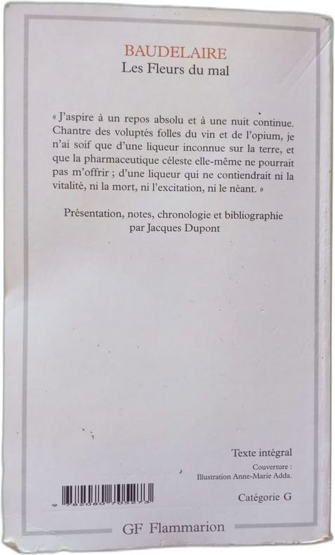 Sommaire: Baudelaire et les Fleurs du mal, Histoire et structure des Fleurs du mal, Thèmes baudelairiens, L'univers des Fleurs du mal, L'art des Fleurs du mal, Modernité des Fleurs du mal. Classification Dewey : 372.6-Livre scolaire : français