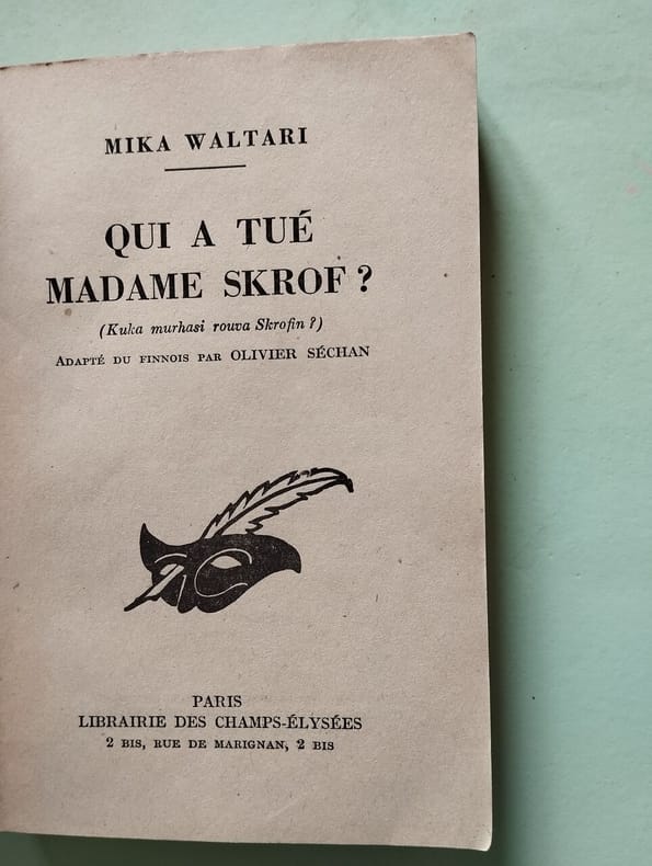 LE MASQUE collection de romans d' aventures créée et dirigée par Albert Pigasse. adapté du Finnois par Olivier Sechan. Classification Dewey : 830-Littératures des langues germaniques