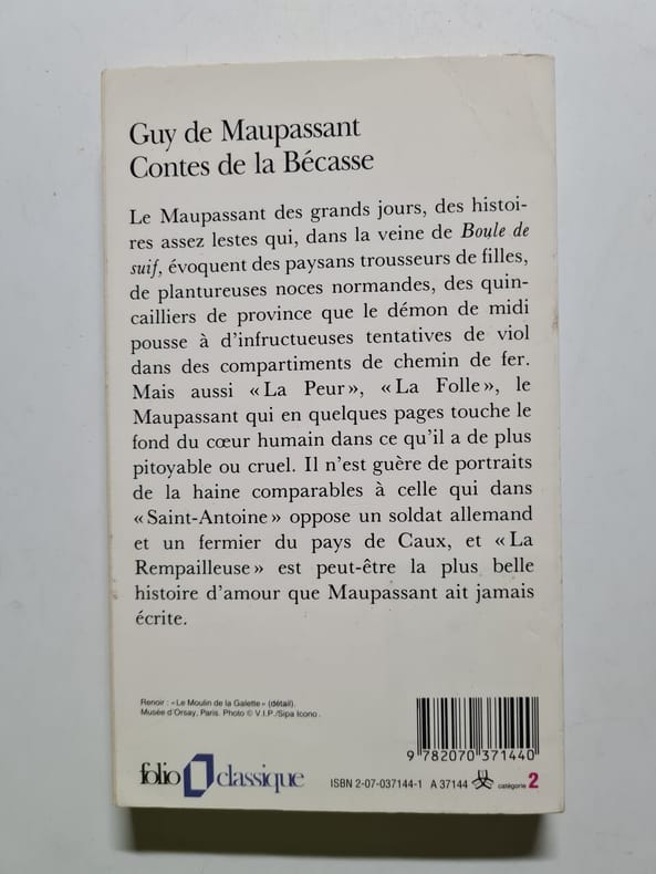 Le Livre de Poche Sans date. Recueil de seize nouvelles normandes de Guy de Maupassant structuré autour d'un rituel de chasse où le convive désigné pour manger la tête de bécasse doit raconter une histoire. Ces récits mêlent drôlerie et noirceur tragique et farce reflétant le pessimisme caractéristique de l'auteur