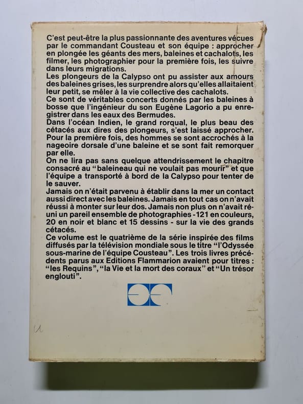 Flammarion Jaquette en très bon état Paris 1973 255 pages en format 18 - 25.5 cm - nombreuses photographies en couleurs + appendice I les cétacés + glossaire - reliure rigide en percaline bleue avec titres en blanc 2-08-200.419-8