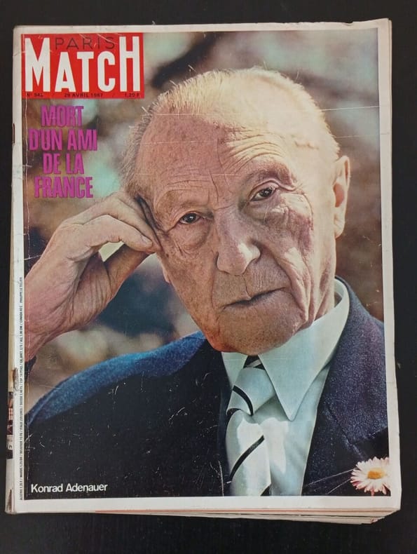 150 PAGES-QUI A TRAHI LE SECRET DE PAUL VI ?, 3P-VICTOIRE DE LA FRANCE AU TOURNOI DES CINQ NATIONS, 4P-MORT DE KONRAD ADENAUER, 30P-ENTRETIEN DE CLAUDIA CARDINALE A PROPOS DE SON FILS, 4P-JEAN ANOUILH A BORD DU "FRANCE", 2P-AVANT DERNIERE PAGE FROISSEE