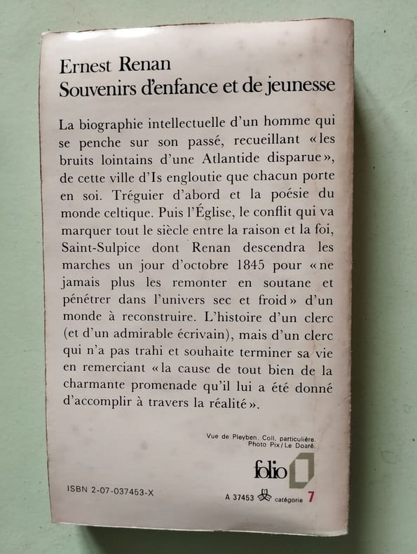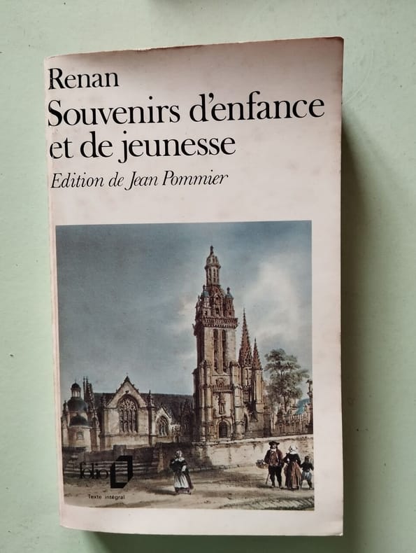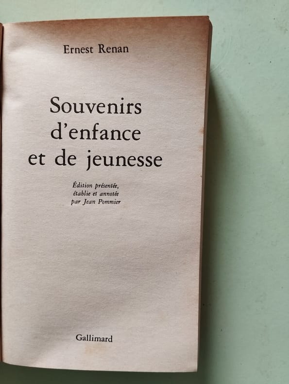 Ernest Renan est né en Bretagne à Tréguier. Il restera toute sa vie attaché à sa petite patrie et gardera la nostalgie d'une enfance bercée par les vieux récits celtiques, sur la ville d'Is notamment, et par son éducation religieuse. Ecrit au soir de sa vie, en 1883, cet ouvrage est moins le récit de sa jeunesse qu'une suite de réflexions et de pensées sur les traditions de la Bretagne profonde. ˮLes Souvenirs d'Enfance n'ont pas la prétention de former un récit complet et suivi. Ce sont, presque sans ordre, les images qui me sont apparues et les réflexions qui me sont venues à l'esprit, pendant que j'évoquais ainsi un passé vieux de cinquante ans...On écrit de telles choses pour transmettre aux autres la théorie de l'univers qu'on porte en soi. La forme de Souvenirs m'a paru commode pour exprimer certaines nuances de pensée que mes autres écrits ne rendaient pas. Je ne me suis nullement proposé de fournir des renseignements par avance à ceux qui feront sur moi des notices ou des articles.ˮ Belle édition, illustrée par G. Zévort (hors-textes et bandeaux), avec un émouvant portrait de l'auteur en frontispice dessiné par Ary Renan (son fils) et de charmantes lettrines colorisées. Un des 980 exemplaires numérotés (n°671) sur pur fil Lafuma.