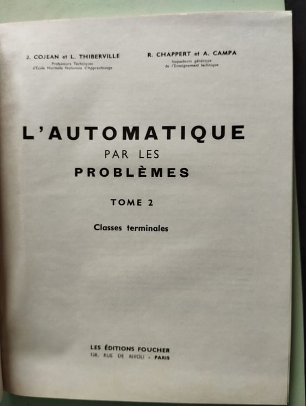 nombreuses figures et schémas dans le texte Contents, Chapitres : 1. Généralités : Algèbre de Boole et ses applications - Les relais statiques - Logique combinatoire - Logique séquentielle - 2. Problèmes d'application : Problèmes à deux variables primaires d'entrée et une seule variable secondaire d'entrée - Problèmes à une ou deux variables primaires d'entrée et deux variables secondaires - Problèmes comportant trois variables primaires d'entrée et une variable secondaire - Etude des mécanismes à caractères cycliques, marche cycle par cycle, marche continue - Problèmes comportant trois variables primaires d'entrée et deux variables secondaires - Prolbèmes relatifs au cas où des entrées identiques fournissent des sorties analogues - Etudes d'ensembles automatisés - Etude des aléas couverture à peine jaunie et très légèrement empoussiérée notamment sur le plat, inférieur, traces de pliures aux coins des plats, cela reste un bon exemplaire, intérieur propre, papier à peine jauni, tome 1 seul de cette série, complet en lui-même