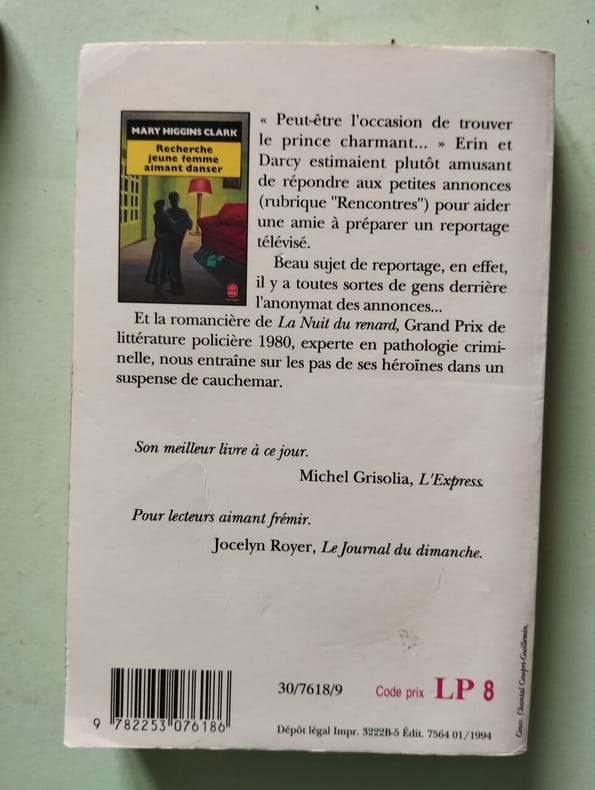 Le Livre de Poche 1991 1991. Mary Higgins Clark - Recherche jeune femme aimant danser / Le Livre de Poche 1991