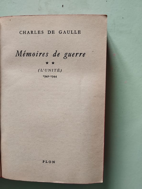 1963, Plon, Club français des bibliophiles, in-4 pleine toile kaki de 293, 359, 372, 239 et 301 pages, signets, médaillons gravés dorés au centre des 1ers plats des tomes Mémoires de guerre, nombreuses photographies noir et blanc, quelques unes en couleurs, cartes couleurs. Tome 1 : Mémoires de guerre, l'appel, 1940-1942, tome 2 : Mémoires de guerre, l'Unité, 1942-1944, tome 3 : Mémoires de guerre, le Salut 1944-1946 / Tome 1 : Oeuvres, la discorde chez l'ennemi, le fil de l'épée, Tome 2 : Oeuvres, vers l'armée de métier, la France et son armée. | Etat : Bon état général, rhodoïds abîmés avec manques (Ref.: G6749)