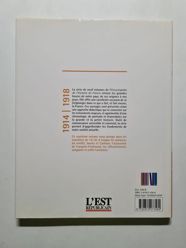 1918 1918. grand format cartonné avec jaquette 120 pages édité par l'Est Républicain en 2006; abondamment illustré ce volume nous plonge dans les tranchées de 1914 - 1918; il évoque les prémices du conflit Jaurès et Caillaux l'assassinat de François Ferdinand les affrontements sanglants l'armistice en très bon état d'occasion ; complet et solide sans déchirures ni annotations intérieur propre; jaquette sans manque