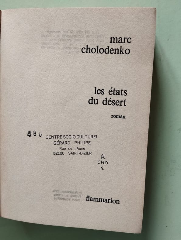 Editions Flammarion 1976 1976. Marc Cholodenko: Les états du désert/ Flammarion 1976 . Marc Cholodenko: Les états du désert/ Flammarion 1976