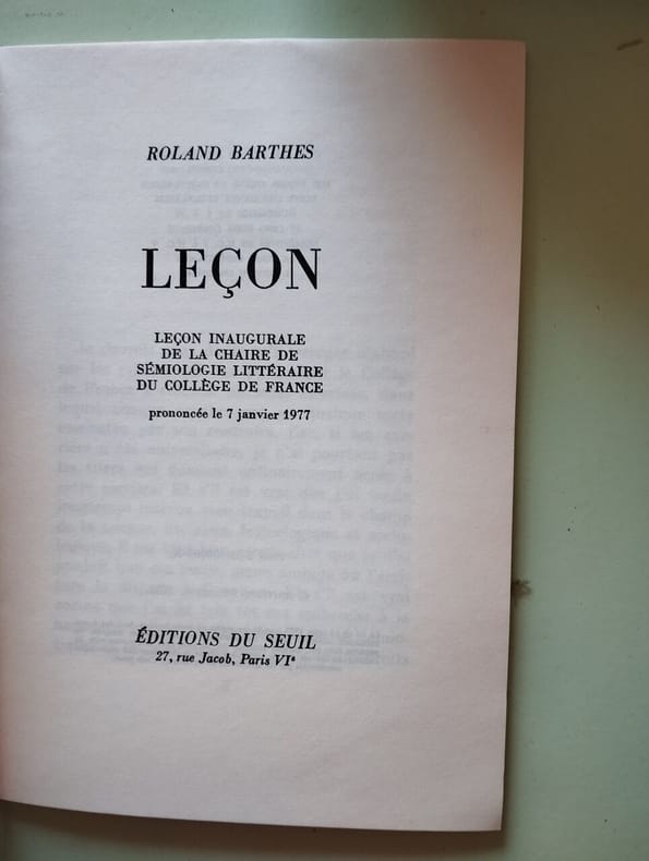 Paris Imp. Daupeley-Gouverneur 16x25cm broché 30p. Edition originale.Tirage justifié à 850 exemplaires. Bel exemplaire. Leçon rééditée l'année suivante au éditions du Seuil. Bel exemplaire.