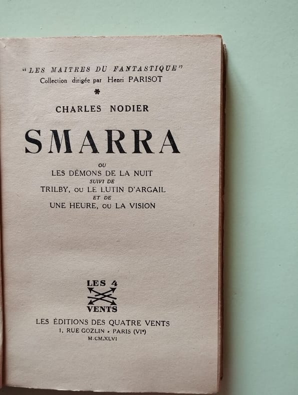 Seconde édition, l'originale datant de 1821. La collation de l'ouvrage est cependant rigoureusement identique à celui de 1821. La page de faux-titre comporte "Romans, nouvelles et mélanges; par Ch. Nodier. - Poésies slaves". Ouvrage provenant du cabinet Littéraire de RICHARD Eugène à Pezenas et comporte son tampon en page de titre. Traces de colle (jaunes) en page de faux-titre provenant sans doute d'une étiquette collée par ledit Cabinet littéraire. menus défauts à la reliure. Rare.