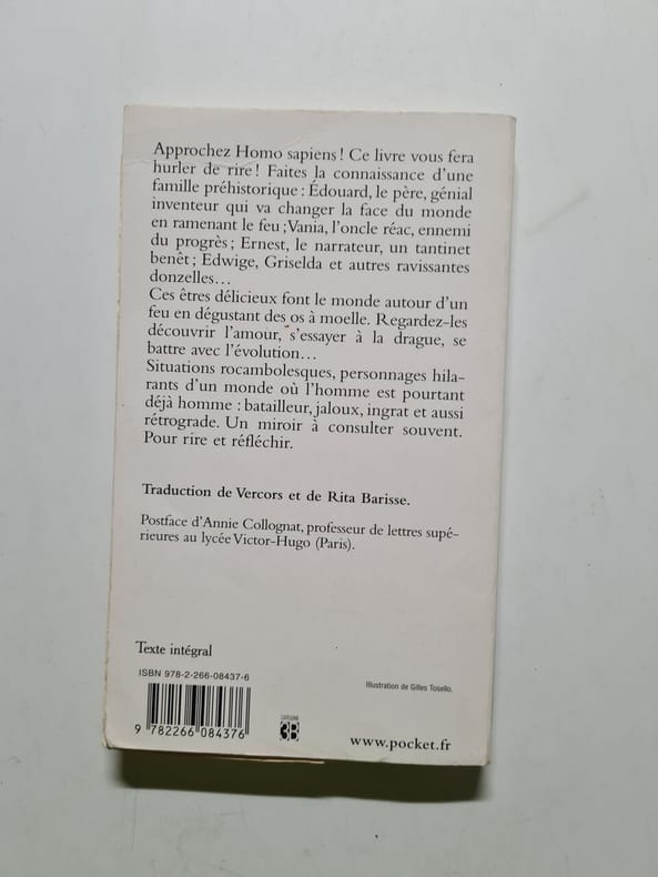 Pocket / Blanche 1994 183 pages in12. 1994. Broché. 183 pages. Approchez homo sapiens ! Ce livre vous fera hurler de rire ! Faites la connaissance d'une famille préhistorique : Edouard le père génial inventeur qui va changer la face du monde en ramenant le feu ; Vania l'oncle réac ennemi du progrès ; Ernest le narrateur un tantinet benêt ; Edwige Griselda et autres ravissantes donzelles... Ces êtres délicieux font le monde autour d'un feu en dégustant des os à moelle. Regardez-les découvrir l'amour s'essayer à la drague se battre avec l'évolution... Situations rocambolesques personnages hilarants d'un monde où l'homme est pourtant déjà homme : batailleur jaloux ingrat et aussi rétrograde. Un miroir à consulter souvent. Pour rire et réfléchir