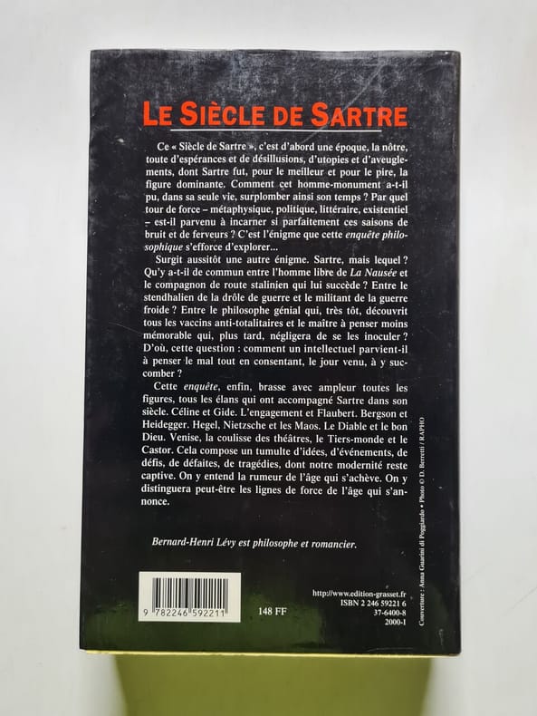 Grasset et fasquelle / Essais 2000 668 pages in8. 2000. Broché avec sa jaquette. 668 pages. Ce 'Siècle de Sartre' c'est d'abord une époque la nôtre toute d'espérance et de désillusions d'utopies et d'aveuglements dont Sartre fut pour le meilleur et pour le pire la figure dominante. Comment cet homme-monument a-t-il pu dans sa seule vie surplomber ainsi son temps ? Par quel tour de force - métaphysique politique littéraire existentiel - est-il parvenu à incarner si parfaitement ces saisons de bruit et de ferveurs ? C'est l'énigme que cette enquête philosophique s'efforce d'explorer... Surgit aussitôt une autre énigme. Sartre mais lequel ? Qu'y a-t-il de commun entre l'homme libre de La Nausée et le compagnon de route stalinien qui lui succède ? Entre le stendhalien de la drôle de guerre et le militant de la guerre froide ? Entre le philosophe génial qui très tôt découvrit tous les vaccins anti-totalitaires et le maître à penser moins mémorable qui plus tard négligera de se les inoculer ? D'où cette question : comment un intellectuel parvient-il à penser le mal tout en consentant le jour venu à y succomber ? Cette enquête enfin brasse avec ampleur toutes les figures tous les élans qui ont accompagné Sartre dans son siècle. Céline et Gide. L'engagement et Flaubert. Bergson et Heidegger. Hegel Nietzsche et les Maos. Le Diable et le bon Dieu. Venise la coulisse des théâtres le Tiers-monde et le Castor. cela compose un tumulte d'idées d'événements de défis de défaites de tragédies dont notre modernité reste captive. On y entend la rumeur de l'âge qui s'achève. On y distinguera peut-être les lignes de force de l'âge qui s'annonce. Bernard-Henri Lévy est philosophe et romancier