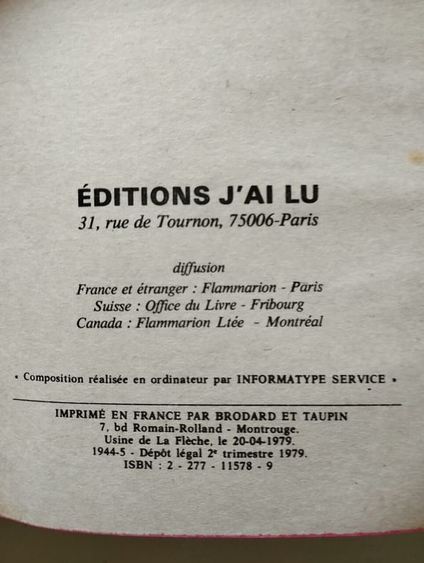 J'ai lu 1979 11x1 6x16 4cm. 1979. Broché.