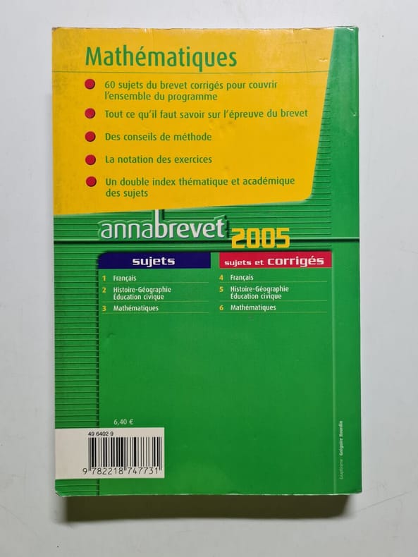 Les sujets 2005 corrigés. Des sujets complémentaires... Classification Dewey : 372.7-Livre scolaire : mathématiques