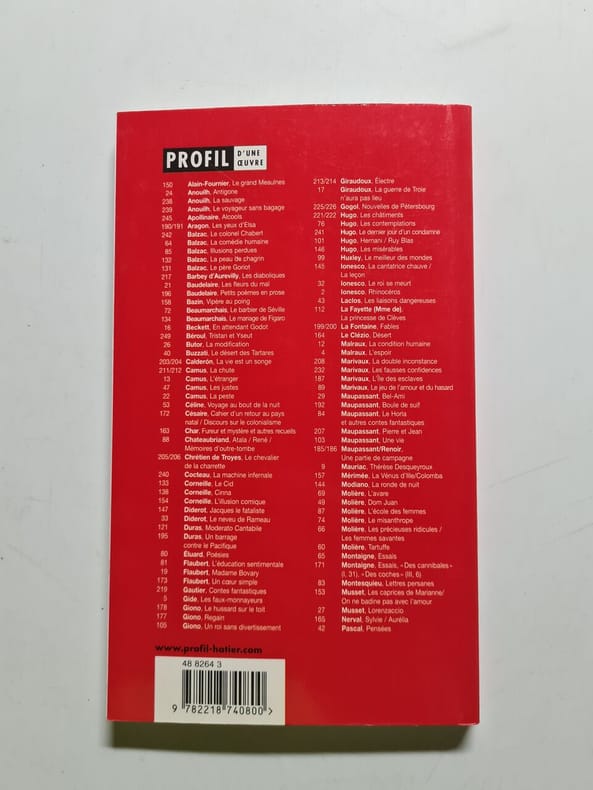 Collection profil d'une oeuvre n°8- Analyse critique par Claude Abastado. Classification Dewey : 372.6-Livre scolaire : français