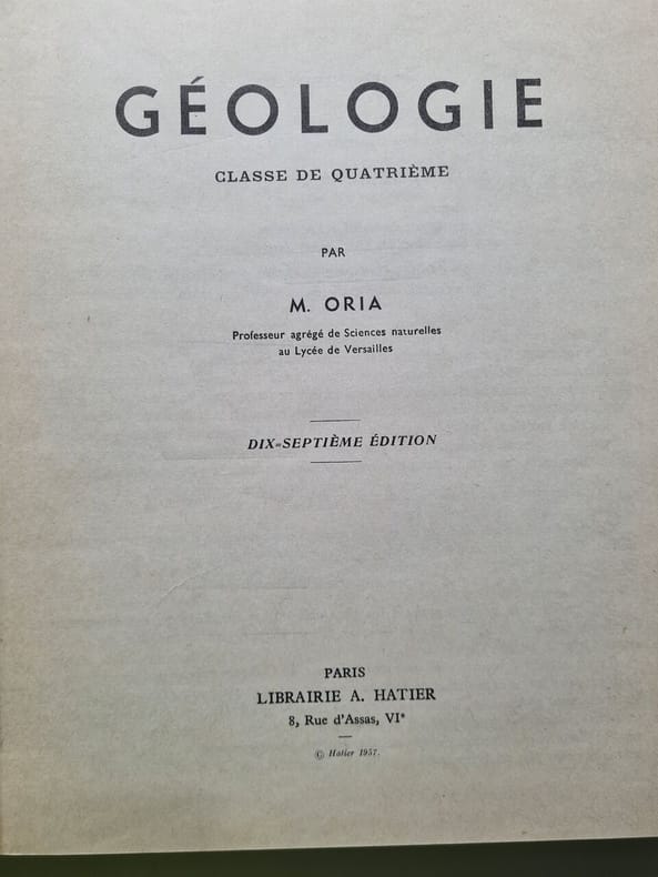 Collection 'Marcel Oria'. Classification Dewey : 551-Géologie