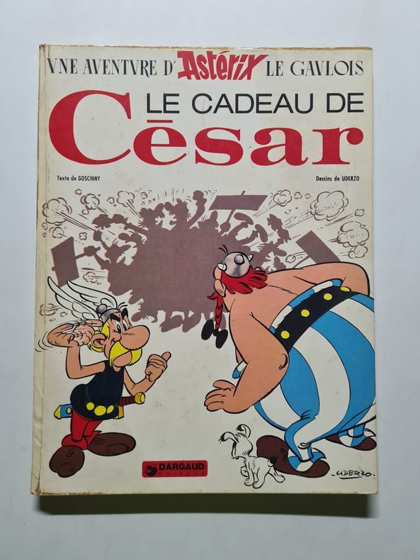 Paris Dargaud S.A Editeur 1974 in 4 (29,8 x 22,5) 1 volume reliure cartonnée illustrée de l'éditeur, dos titré, 48 pages (mention de dépôt légal 3ème trimestre 1974). 4ème plat dit ''au Menhir'', avec pour dernier titre: le cadeau de César. Bel exemplaire