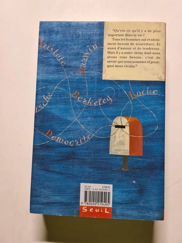 1998 558pp. in8 broche en bon etat Alice au pays de la philosophie. La parfaite initiation au monde soi- disant fermé de la philosophie. Comme tous les classiques de la littérature, convient aussi aux adultes. Un immense succès ou la revanche des philosophes. Ce roman sur l'histoire de la philosophie, plus près d'Alice au pays des merveilles revu par Tex Avery que de la bibliothèque de la Pléiade, est une bonne idée. A en juger par son succès, il correspond à un besoin. Dans un pays comme le nôtre où les professeurs de philosophie se demandent s'il ne faudrait pas commencer plus tôt qu'en classe de terminale l'enseignement de cette discipline, le roman de Jostein Gaarder pourrait apparaître comme une expérience pédagogique de référence. Ce livre d'initiation à l'histoire et à l'exercice de la pensée est à mettre entre toutes les mains. Un roman dont le personnage principal est la philosophie : non pas une histoire de la philosophie romancée, mais un vrai roman, un thriller, qui, de Démocrite à John Rawls et à Jean- Paul Sartre, explique sans langage abscons tous les grands moments de la pensée occidentale.