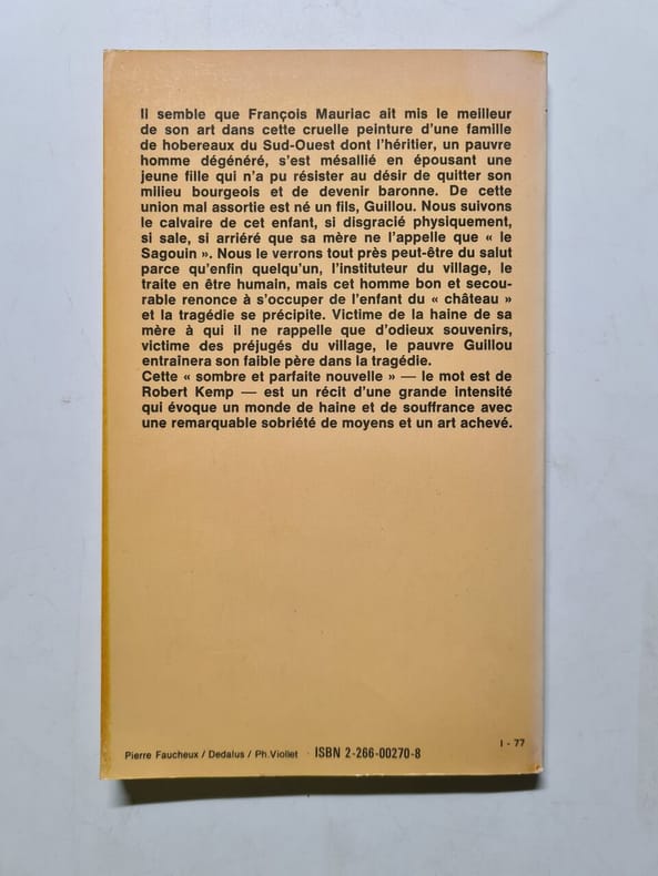 Presses Pocket 1989 1989. François Mauriac - Le Sagouin / Presses Pocket 1989