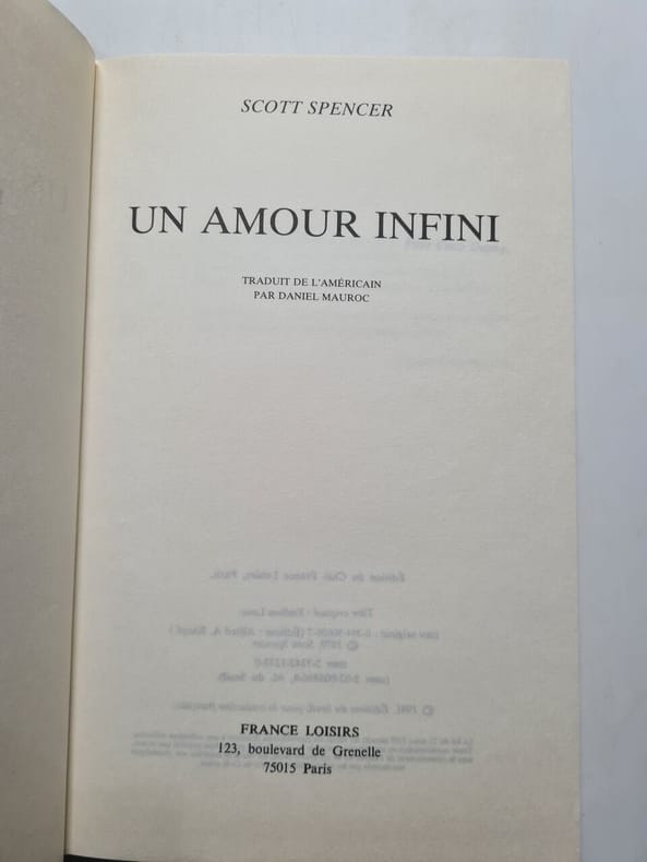 1982 1982. Scott Spencer: Un amour infini/ France Loisirs 1982