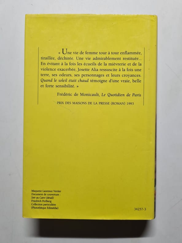 1993 1993. Josette Alia: Quand le soleil était chaud/ Grasset 1993 . Josette Alia: Quand le soleil était chaud/ Grasset 1993