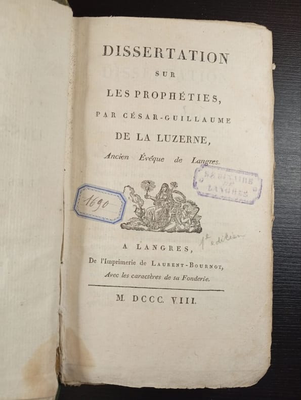Sans date. Dissertation sur les prophéties - César-Guillaume de La Luzerne/ 1808