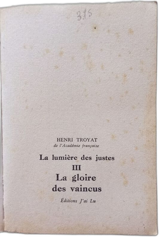 Éditions J'ai lu 1969 1969. Henri Troyat - La lumière des justes Tome 3 : La gloire des vaincus /J'ai Lu 1969