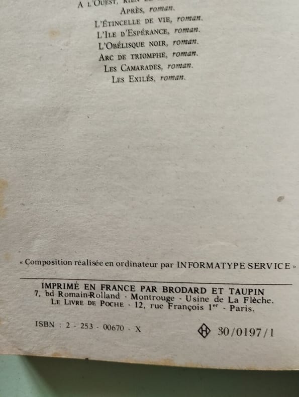 Le Livre de Poche Sans date. 2 Erich-Maria Remarque: A l'ouest rien de nouveau / Le Livre de Poche