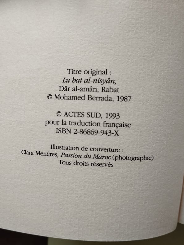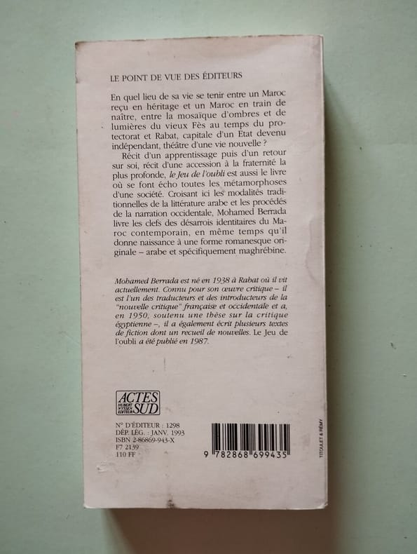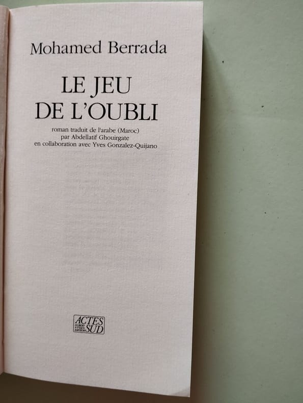 1993 1993. Mohamed Berrada: Le Jeu de l'Oubli/ Actes Sud 1993 . Mohamed Berrada: Le Jeu de l'Oubli/ Actes Sud 1993