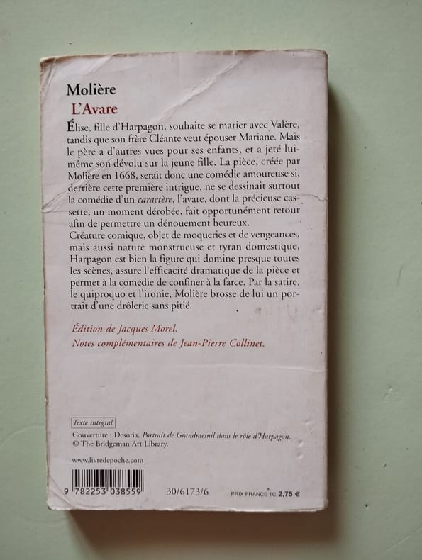 Larousse Sans date. L'Avare de Molière est une comédie de caractère qui met en scène Harpagon un vieil homme obsédé par son argent dont l'avarice extrême perturbe la vie de ses enfants et de son entourage. La pièce explore les conflits familiaux et les manœuvres amoureuses dans un contexte où l'argent domine toutes les relations