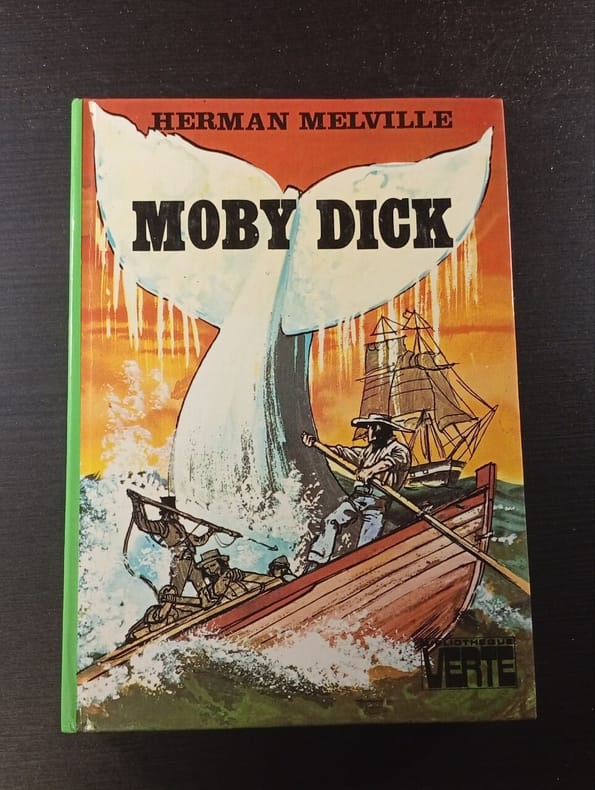 Publié sous les titres The Whale à Londres en 1851 et Moby Dick à New York, ce grand récit d'aventure au souffle épique décortique l'Amérique citadine et bourgeoise, « cette barbarie éclairée au gaz » (Baudelaire). Dans ce récit de la vie en mer qui est aussi une véritable somme encyclopédique Herman Melville mélange tous les genres. Parmi les sources majeures de ce corpus monstrueux, on pourrait citer pêle-mêle l'Odyssée, la Bible, Rabelais, Montaigne, Shakespeare, Milton, Goethe, Poe et Hawthorne auquel le roman est dédié. La traduction française sera donnée à partir de mai 1938, par Lucien Jacques, Joan Smith et Jean Giono, dans Les Cahiers du Contadour, à partir du n° V, jusqu'au dernier numéro, le VIII, de février 1939. La déclaration de guerre mettra fin abruptement à l'aventure pacifico-littéraire du Contadour et à la publication des Cahiers du même nom. Confidentielle et avortée, l'édition sera remplacée par celle publiée chez Gallimard en 1941. Très bel exemplaire sous le cartonnage édité d'après une maquette de Paul Bonet, commercialisé en novembre 1941, trois mois après la diffusion du texte dans la collection blanche. Si ce volume n'est pas particulièrement rare, sa jaquette l'est : elle est ici en parfaite condition de neuf. Rare ainsi.