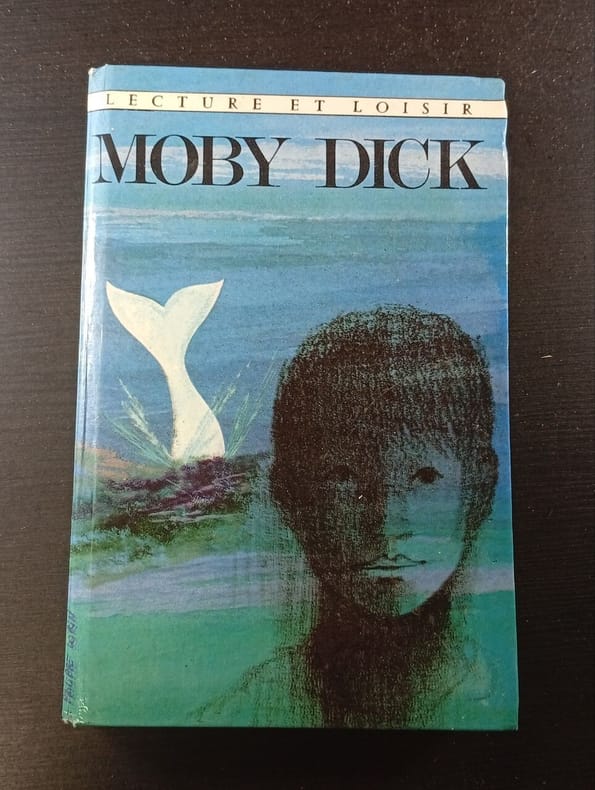 Publié sous les titres The Whale à Londres en 1851 et Moby Dick à New York, ce grand récit d'aventure au souffle épique décortique l'Amérique citadine et bourgeoise, « cette barbarie éclairée au gaz » (Baudelaire). Dans ce récit de la vie en mer qui est aussi une véritable somme encyclopédique Herman Melville mélange tous les genres. Parmi les sources majeures de ce corpus monstrueux, on pourrait citer pêle-mêle l'Odyssée, la Bible, Rabelais, Montaigne, Shakespeare, Milton, Goethe, Poe et Hawthorne auquel le roman est dédié. La traduction française sera donnée à partir de mai 1938, par Lucien Jacques, Joan Smith et Jean Giono, dans Les Cahiers du Contadour, à partir du n° V, jusqu'au dernier numéro, le VIII, de février 1939. La déclaration de guerre mettra fin abruptement à l'aventure pacifico-littéraire du Contadour et à la publication des Cahiers du même nom. Confidentielle et avortée, l'édition sera remplacée par celle publiée chez Gallimard en 1941. Très bel exemplaire sous le cartonnage édité d'après une maquette de Paul Bonet, commercialisé en novembre 1941, trois mois après la diffusion du texte dans la collection blanche. Si ce volume n'est pas particulièrement rare, sa jaquette l'est : elle est ici en parfaite condition de neuf. Rare ainsi.