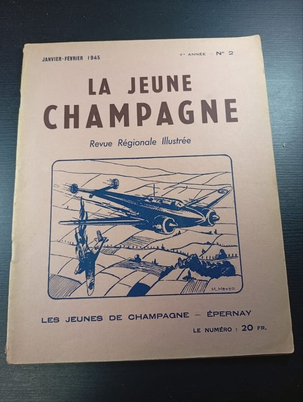 Les Jeunes de Champagne - Epernay Revue 1944 In-4 (21,2 x 27 cm), revue dos agrafé, 31 pages, illustrations en noir ; mouillure et rousseurs au premier plat, dos frotté, papier bruni, assez bon état général. Livraison a domicile (La Poste) ou en Mondial Relay sur simple demande.