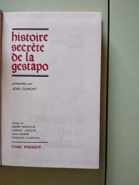 Paris, Fayard, coll. « Les grandes études contemporaines », (6 décembre) 1962 1 vol. (135 x 220 mm) de 472 pp., [3] et 1 ff. Broché. Édition originale. Exemplaire poinçonné du service de presse. Envoi à Jean Desborde, journaliste à Vichy (où travaille Delarue) : « Pour Monsieur Jean Desborde,/cette /Histoire de la Gestapo (ici le titre)/, en hommage respectueux/de l'auteur/Delarue ».