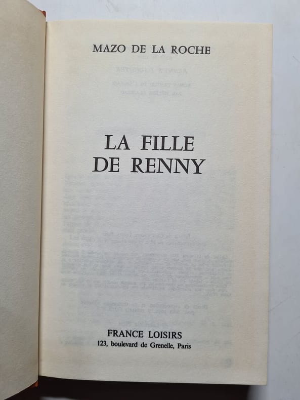 LIBRAIRIE PLON 1951 1951. Mazo de la Roche: La fille de Renny/ Librairie Plon 1951 E-D