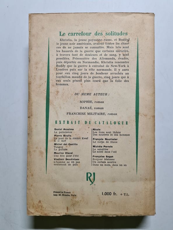 Paris René Julliard 1957 in 8 (22,5x14) 1 volume broché, 435 pages [1]. Collection du prix international du premier roman. Edition originale, celui-ci un des 30 exemplaires numérotés sur alfa mousse des papeteries Navarre (seul grand papier). Bel exemplaire ( Photographies sur demande / We can send pictures of this book on simple request )