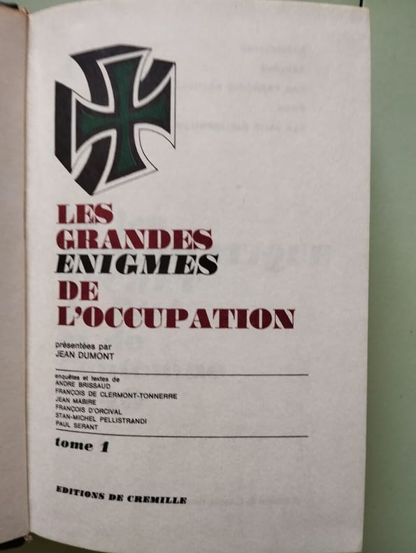 Editions Crémille 1970 1970. Jean Dumont - Les grandes énigmes de l'occupation Tome 1/ Éditions Crémille 1970