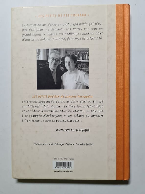 Les petits bocaux de Ludovic Perraudin enferment sous un couvercle de verre tout ce qui est appétissant. Règle du jeu : tu tires sur le caoutchouc pour libérer la terrine de foies de volaille, les sardines à la compote d’aubergines et les crèmes au chocolat à l’ancienne... sinon tu passes ton tour ! Jean-Luc Petitrenaud Bon état d’occasion