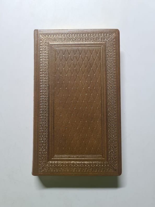 12,5x20,5 cm, 627 pages, état neuf, plein cuir noir, dos avec pièces de titre et entre nerfs dorés, tranchefile et signet, plats enluminés, portrait en frontispice, Collection distribuée par le Cercle du Bibliophile, imprimé en Suisse, dessins et gravures à pleine page tirés de Veillées Littéraires Illustrées, Paris, 1868, ouvrage réalisé d'après les maquettes de Gaston de Vulliens, reliure due aux soins de Mayer & Soutter, à Lausanne, papier sans bois des Papeteries Belmont,