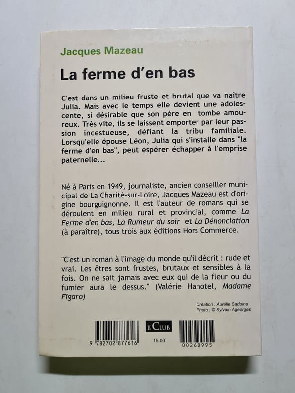 Paris France Loisirs 2003 In 8 C'est dans un milieu fruste et brutal que nait Julia . Mais avec le temps , elle devient une adolescente si gaie et désirable que son père en tombe amoureux . Très vite , ils se laissent emporter par la passion incestueuse , défiant la tribu familiale . Lorsqu'elle épouse Léon , Julia , qui s'installe dans la ferme d'en bas , peut espérer échapper à l'emprise paternelle ...- 460 p. , 550 gr.