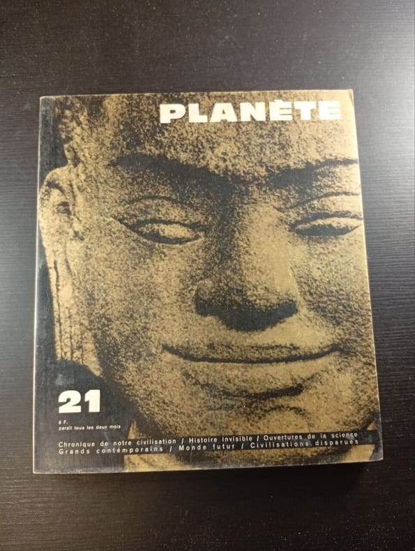 Tête de collection de la revue "Planète" (les treize premiers numéros, plus les n°s 18 et 21), en très bon état. — Entre 1961 et 1968, inspirée par Jacques Bergier et orchestrée par Louis Pauwels, la revue "Planète", placée sous l'invocation du réalisme fantastique, une notion popularisée par "le Matin des Magiciens", connut un succès international. Forte de figures aussi diverses que Jacques Sternberg et Rémy Chauvin, Pierre Restany et Aimé Michel, elle révéla Lovecraft et Escher, Bierce et Gourmelin, questionna le monde des civilisations disparues et posa le problème de la faim, traita d'ufologie et de révolution sexuelle. Une brève aventure intellectuelle doublée d'une réussite médiatique fracassante : "Planète", la revue du « réalisme fantastique », emporta instantanément un immense succès : le premier numéro, tiré à 8000 exemplaires, atteignait les quatre-vingts mille en réimpression avant la sortie du second ! Et "Planète" connut même plusieurs éditions en langues étrangères, privilège dont très peu de revues intellectuelles françaises peuvent se targuer. Rarement aussi, une revue souleva autant de polémiques. Des derniers surréalistes à l'Union Rationaliste, le moins que l'on puisse dire est que l'ensemble de ses ennemis forma une cohorte aussi éclectique que la revue elle-même... Elle s'interrompt, d'abord en août 1968 après 41 numéros, avant de reparaître quelques mois plus tard sous le titre "Le Nouveau Planète" (23 n°s de septembre 1968 à août 1971).