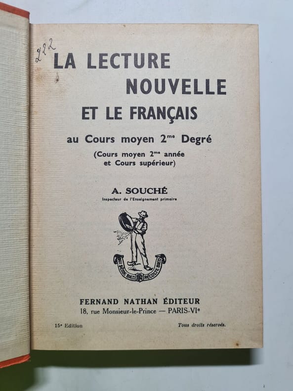 Fernand Nathan. 1947. In-12. Cartonné. Etat d'usage, Tâchée, Dos frotté, Papier jauni. 320 pages - nombreuses illustrations en noir et blanc dans et hors texte - fortes piqûres de vers et manque sur la page de titre altérant la lecture - piqûres de vers en tête de page sur les premirèes pages de l'ouvrage sans réelle conséquence sur la lecture - coins frottés - mouillures sur les plats - petite déchirures sur les plats.. . . . Classification Dewey : 372.4-Livre scolaire : lecture