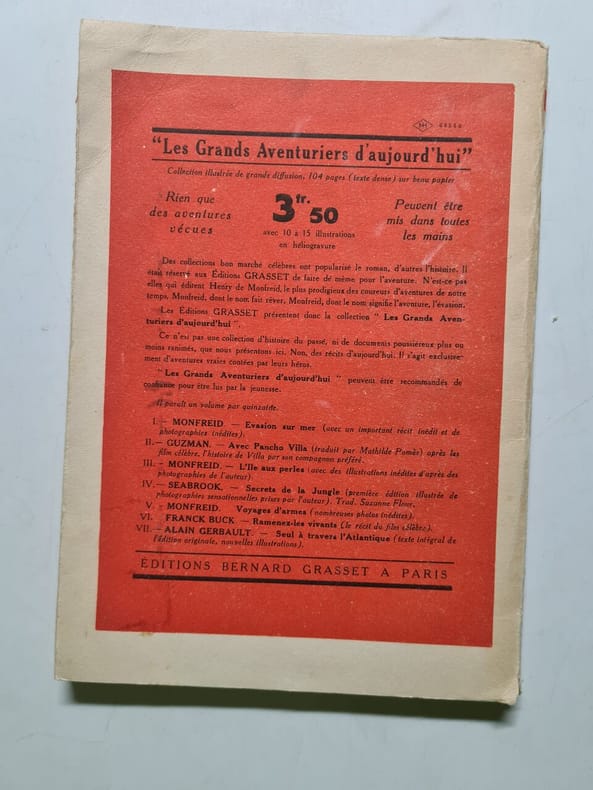 Paris, Grasset (Collection "Les Grands Aventuriers d'Aujourd'hui"), sans date, in 8° broché, 103 pages ; 13 héliogravures hors-texte ; couverture illustrée.
